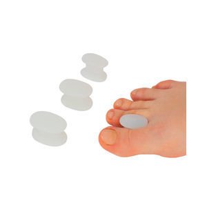 Separates toes and prevents pain produced by the fric tion. Made of an elastic and soft, moisturizing gel, it aids the disappearance of corns and abrasions. Size:S/M/L
